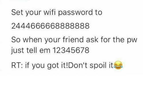 Hãy đặt mật khẩu nhà bạn là 2444666668888888. Sau đó có ai hỏi mật khẩu bạn chỉ việc đọc “12345678”. Dám chắc 100% đều không thể đánh đúng mật khẩu.