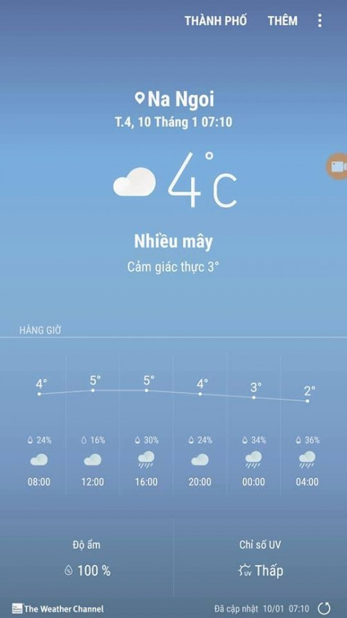 Nhiệt độ ở Kỳ Sơn ghi nhận vào sáng 10/1 là 4 độ C (Facebooker Đào Thọ).