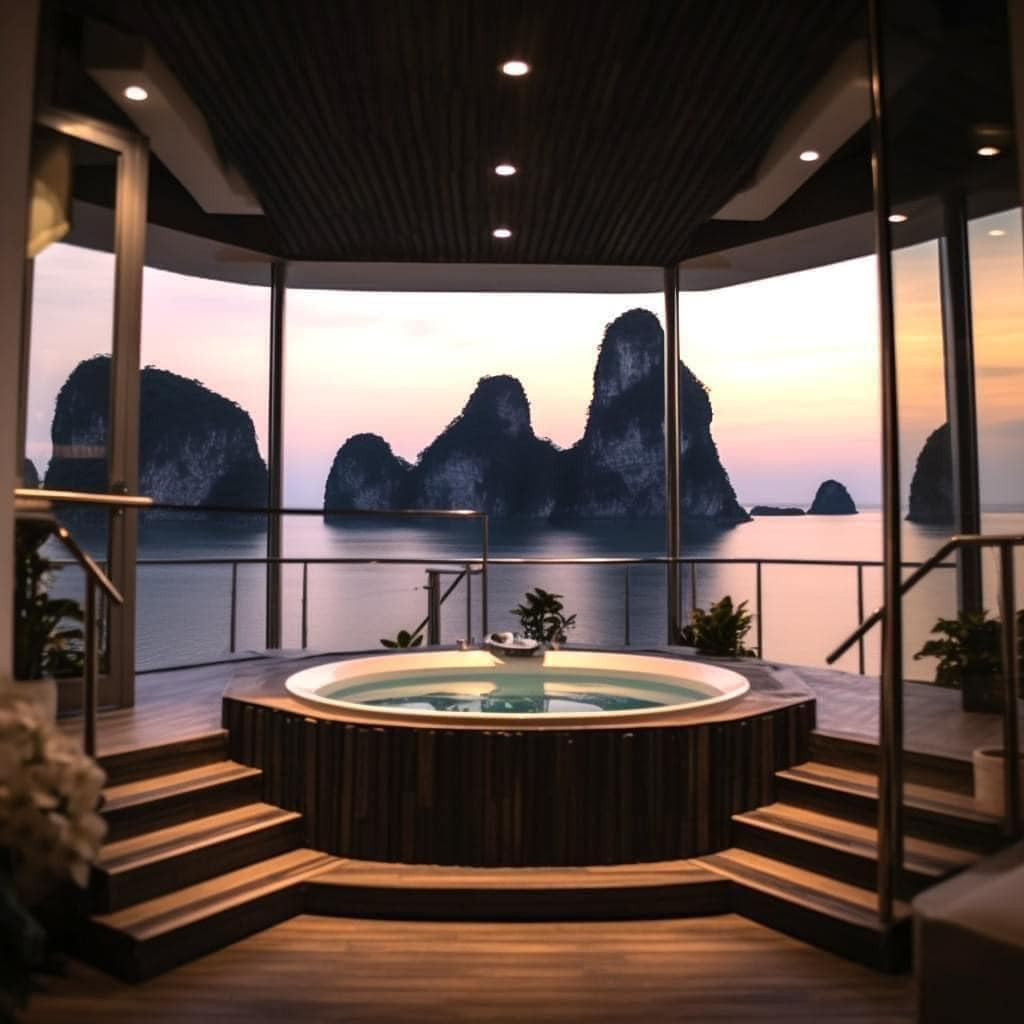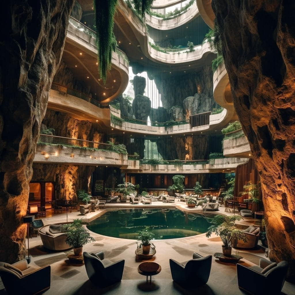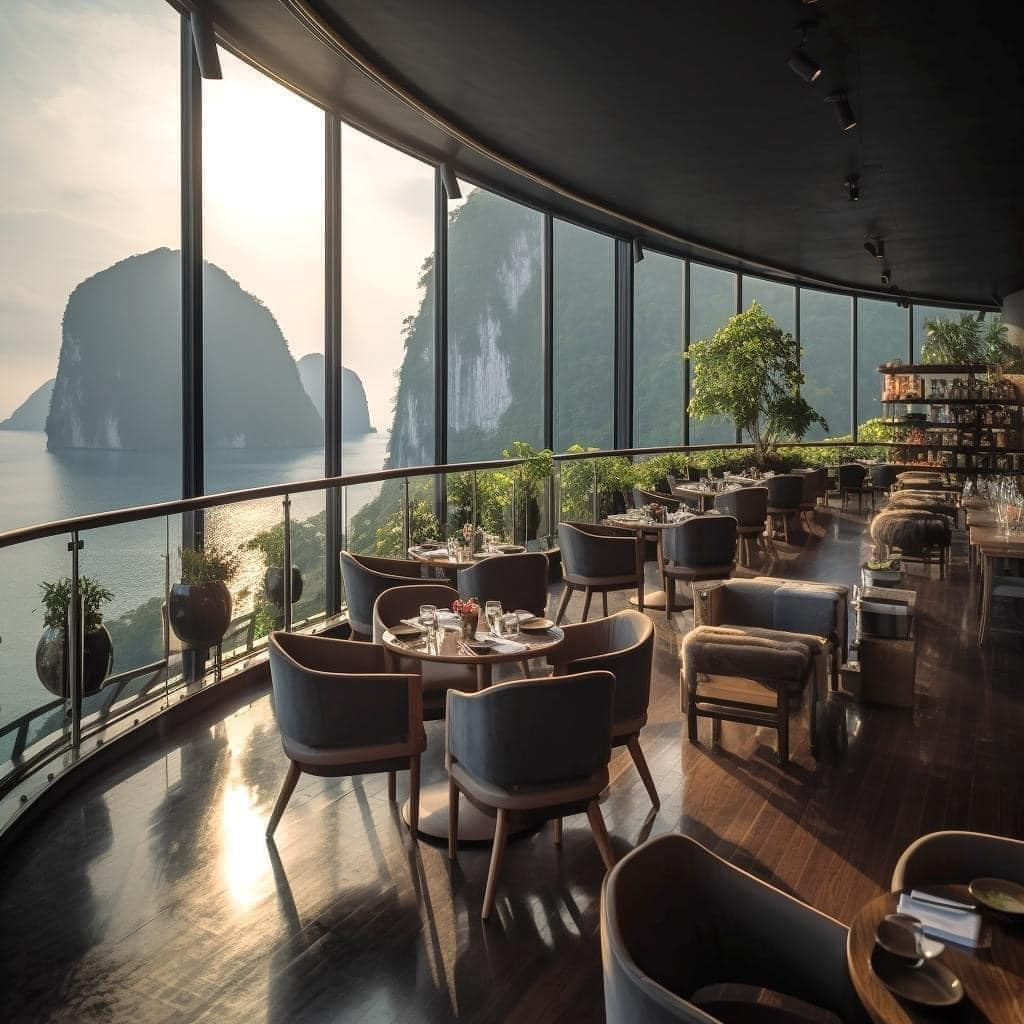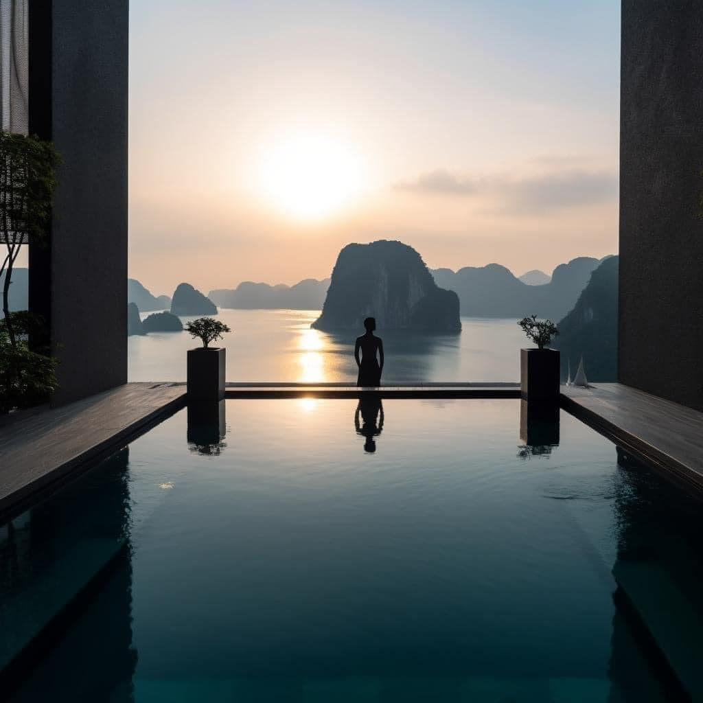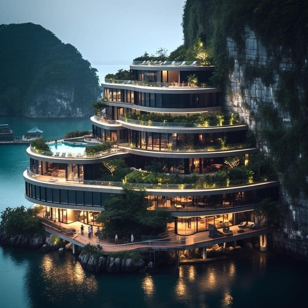 Theo phối cảnh 3D, khách sạn sẽ có vị thế "lưng tựa núi", nằm bên trong vùng lõi của di sản vịnh Hạ Long. Một số bức ảnh phòng khách sạn cho thấy du khách có thể ngắm toàn cảnh vịnh nhờ thiết kế cửa kính 360 độ. Tại tầng 5 của khách sạn còn có một hồ bơi lớn. Một bức ảnh khác cho thấy thiết kế sử dụng các tảng đá nhũ bên trong núi, đan xen không gian khu nghỉ dưỡng.