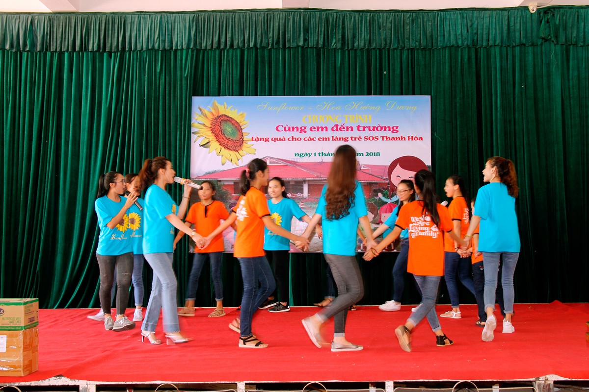 Mới đây, Sunflower đã đặt chân đến Làng trẻ em SOS Thanh Hóa để cùng giao lưu và trao tặng các em nhỏ những phần quá ý nghĩa. Buổi giao lưu còn có sự tham dự của bác Nguyễn Văn Toàn, Đại diện Ban Thi đua khen thưởng tỉnh Thanh Hoá và bác Phan Văn Ấm - giám đốc Làng trẻ SOS Thanh Hóa.