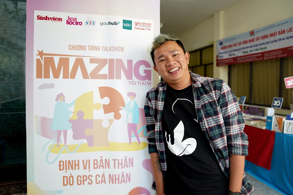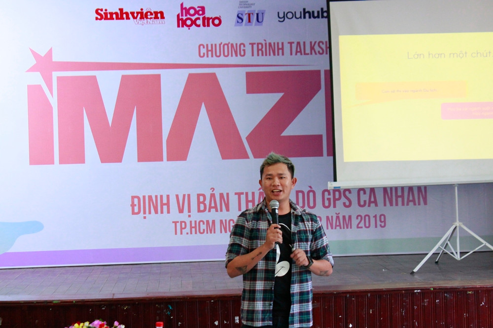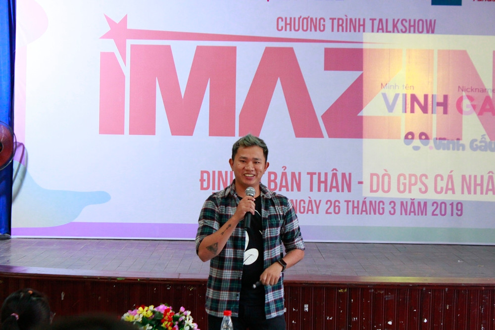 Được biết đến với vai trò là một travel blogger sở hữu nhiều bài viết gần gũi, thú vị được khai thác dưới góc nhìn đa dạng, độc đáo, anh Vinh Gấu đã mang đến buổi talkshow đầu tiên của iMazing những chia sẻ chân thật và vô cùng bổ ích về hành trình trở thành “quân sư du lịch” của giới trẻ và tầm quan trọng của việc tìm hiểu bản thân cho các bạn sinh viên STU. Khi lấy chính câu chuyện của mình làm ví dụ, anh khẳng định: Muốn người khác biết đến mình trước hết mình phải hiểu mình là ai.
