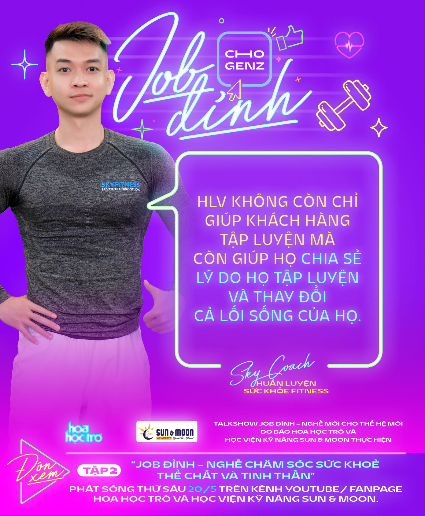 Bên cạnh Người giải mã Chiêm tinh, HLV Fitness cũng là một trong những công việc “lên như diều gặp gió” thời gian qua do nhu cầu chăm sóc sức khỏe ngày một cao. Khác với trước đây, HLV Fitness hiện tại còn là một người lắng nghe và chữa lành cho những khách hàng bị tổn thương tinh thần vì ngoại hình. “Mình giúp khách hàng có động lực để thay đổi, chuyển hóa nỗi đau thành tình yêu thương và tập luyện bởi chính sức khỏe của mình” - anh Sky Coach - HLV Fitness “siêu hot” tâm sự.