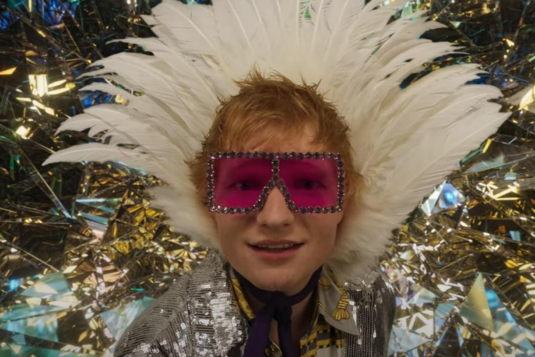 Khoác lên mình chiếc mũ lông vũ, kính râm màu hồng lấp lánh và quần cạp trễ đính đầy sequin gợi nhớ đến Elton John thời kỳ hoàng kim, Ed Sheeran đã tái hiện hoàn hảo tinh thần nhạc Pop của thập niên 70.