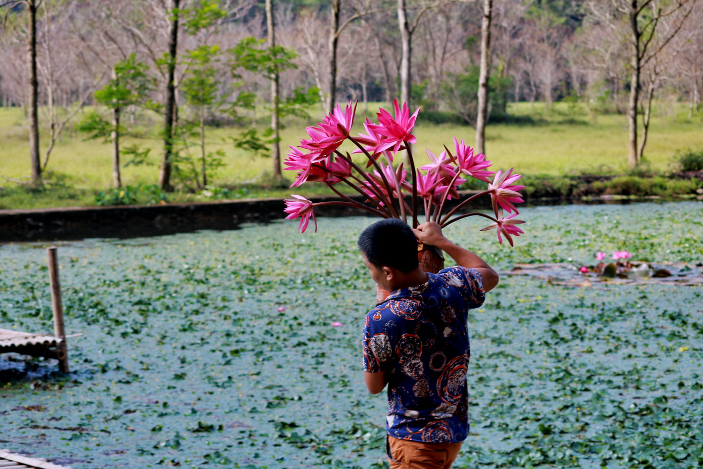 Đến đây, không những được tha hồ ngắm nghía một vùng sông nước, hoa lá mà còn được tận hưởng cảm giác thú vị khi chèo thuyền và tự tay hái cho mình những bông súng đủ mọi sắc hương.