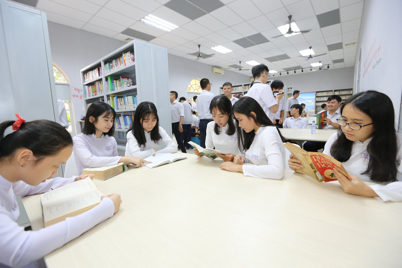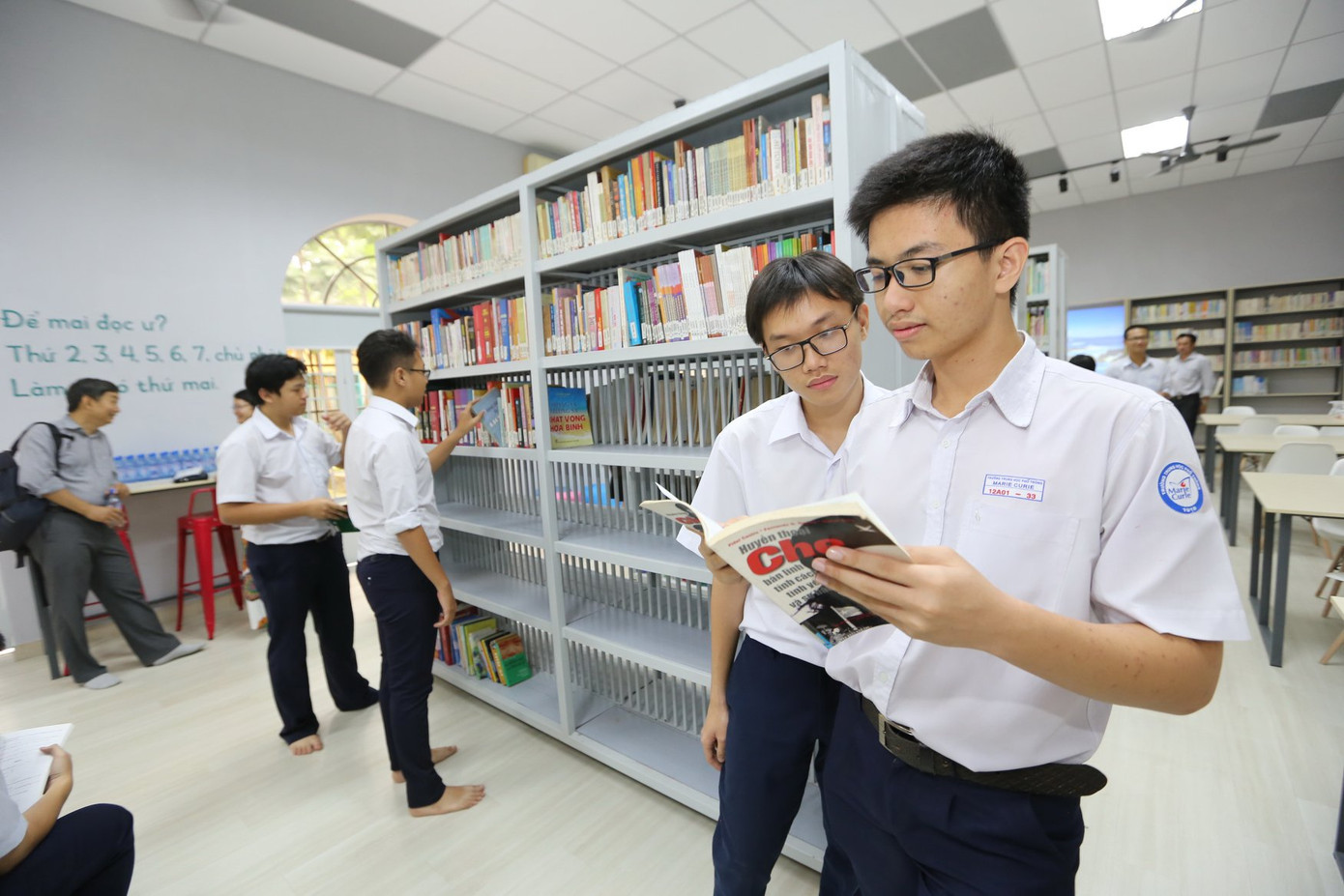 Bên trong thư viện còn được trang bị máy chiếu cùng những trang thiết bị hiện đại có thể phục vụ những buổi thuyết trình, tọa đàm, báo cáo chuyên đề hay giáo dục hướng nghiệp... Ngoài ra, thư viện mới này còn có thêm hơn 11.000 đầu sách mới với đủ các thể loại từ sách học thuật, văn hóa, nghiên cứu khoa học hay sách báo giải trí,... để phục vụ cho nhiều nhu cầu khác nhau của các bạn học sinh.