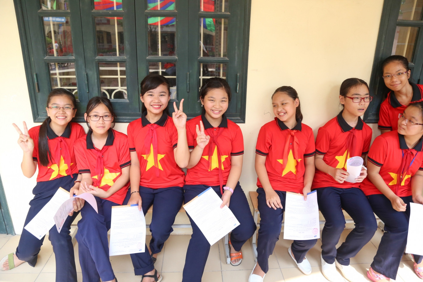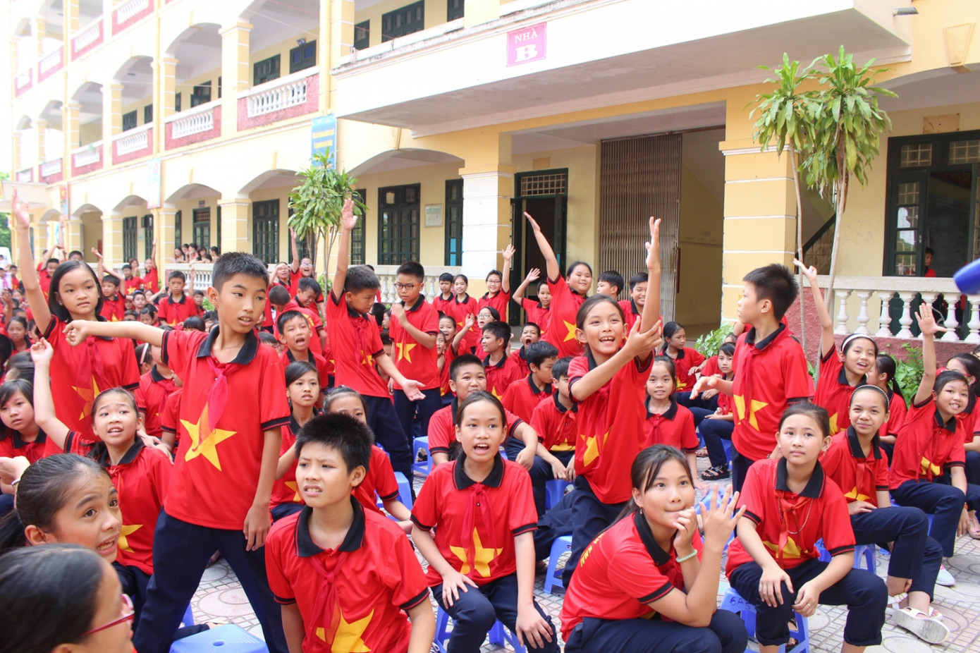 Các bạn khối 6 nhỏ tuổi nhất nhưng rất hào hứng tham gia phần chơi.