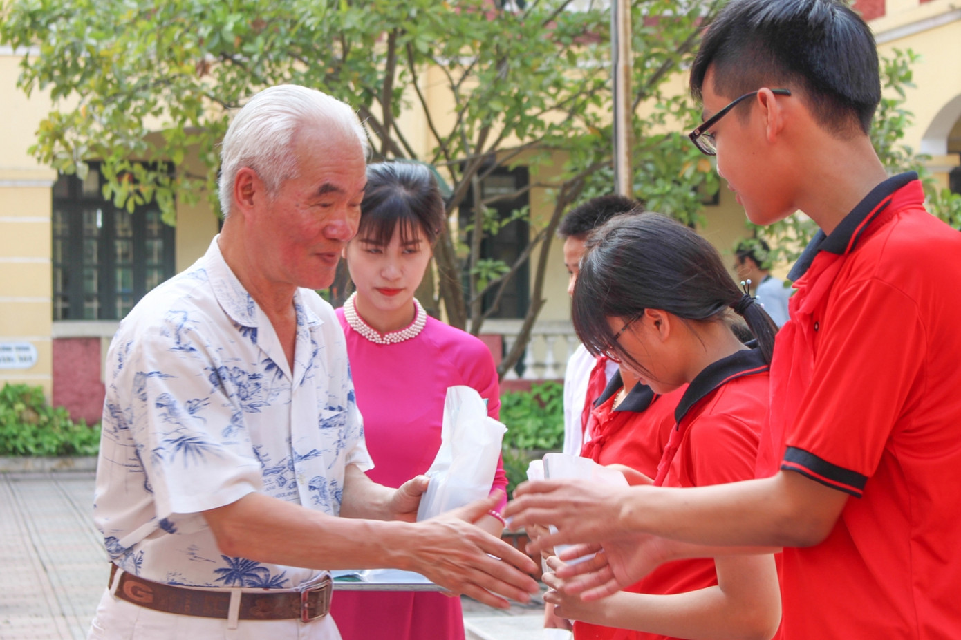 Bác sĩ Đặng Văn Quế, Đại diện mắt quốc tế DND, chia sẻ lời khuyên với các bạn học sinh về tầm quan trọng của việc chăm sóc đôi mắt hàng ngày.
