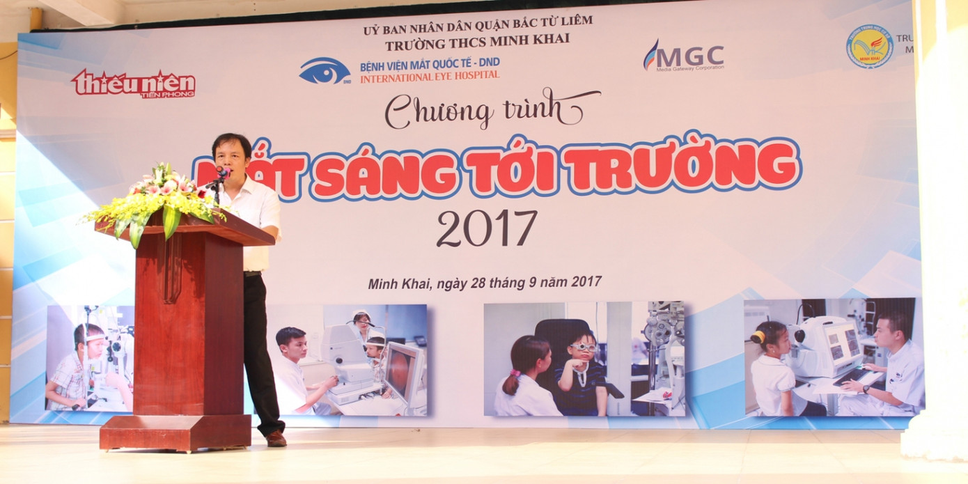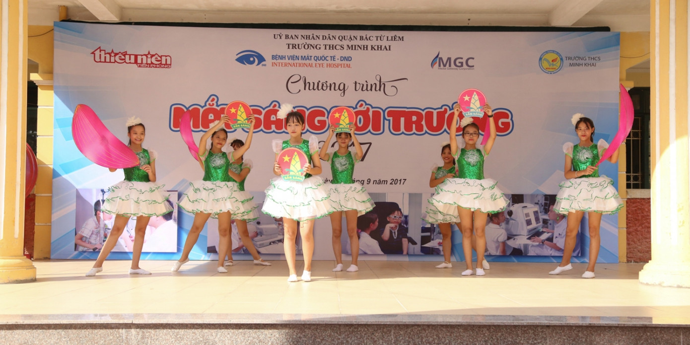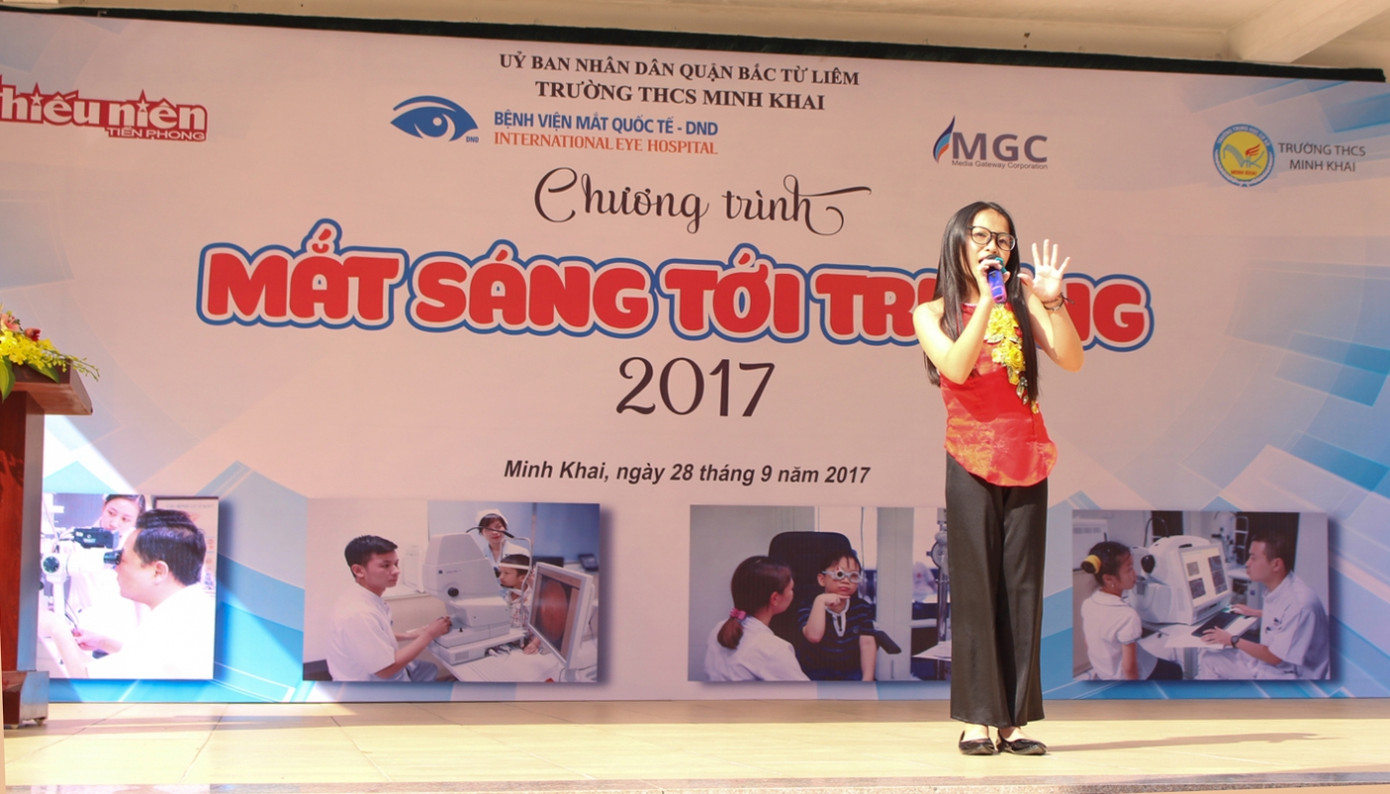 “Mắt sáng tới trường” là một chương trình nhằm tạo ra một không gian vui vẻ, thoải mái giúp các em được vui chơi và thư giãn; giúp các thầy cô giáo và các bạn học sinh thêm hiểu biết về chăm sóc và bảo vệ đôi mắt. Chương trình do Công ty MGC phối hợp cùng Bệnh viện mắt quốc tế DND tổ chức, báo Thiếu niên Tiền phong bảo trợ truyền thông.