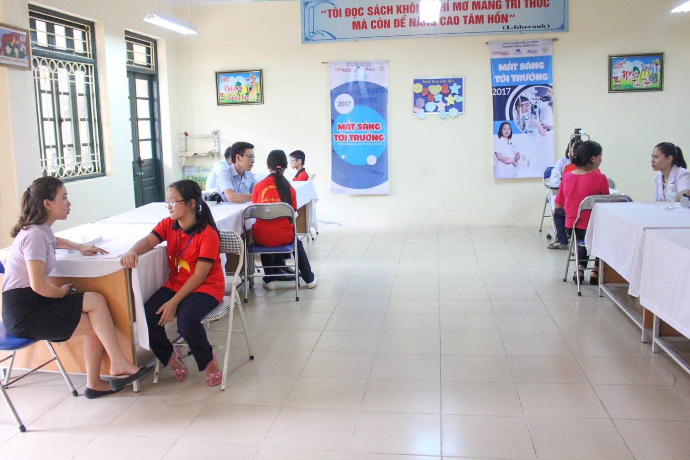 Kết thúc chương trình, hơn 1000 bạn học sinh trường THCS Minh Khai còn được khám và tư vấn miễn phí về mắt tại phòng y tế của trường.