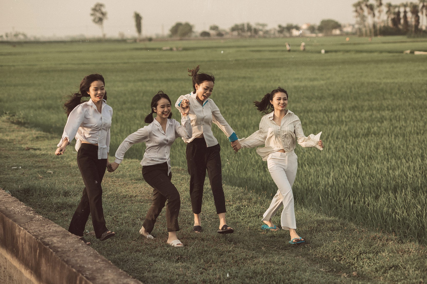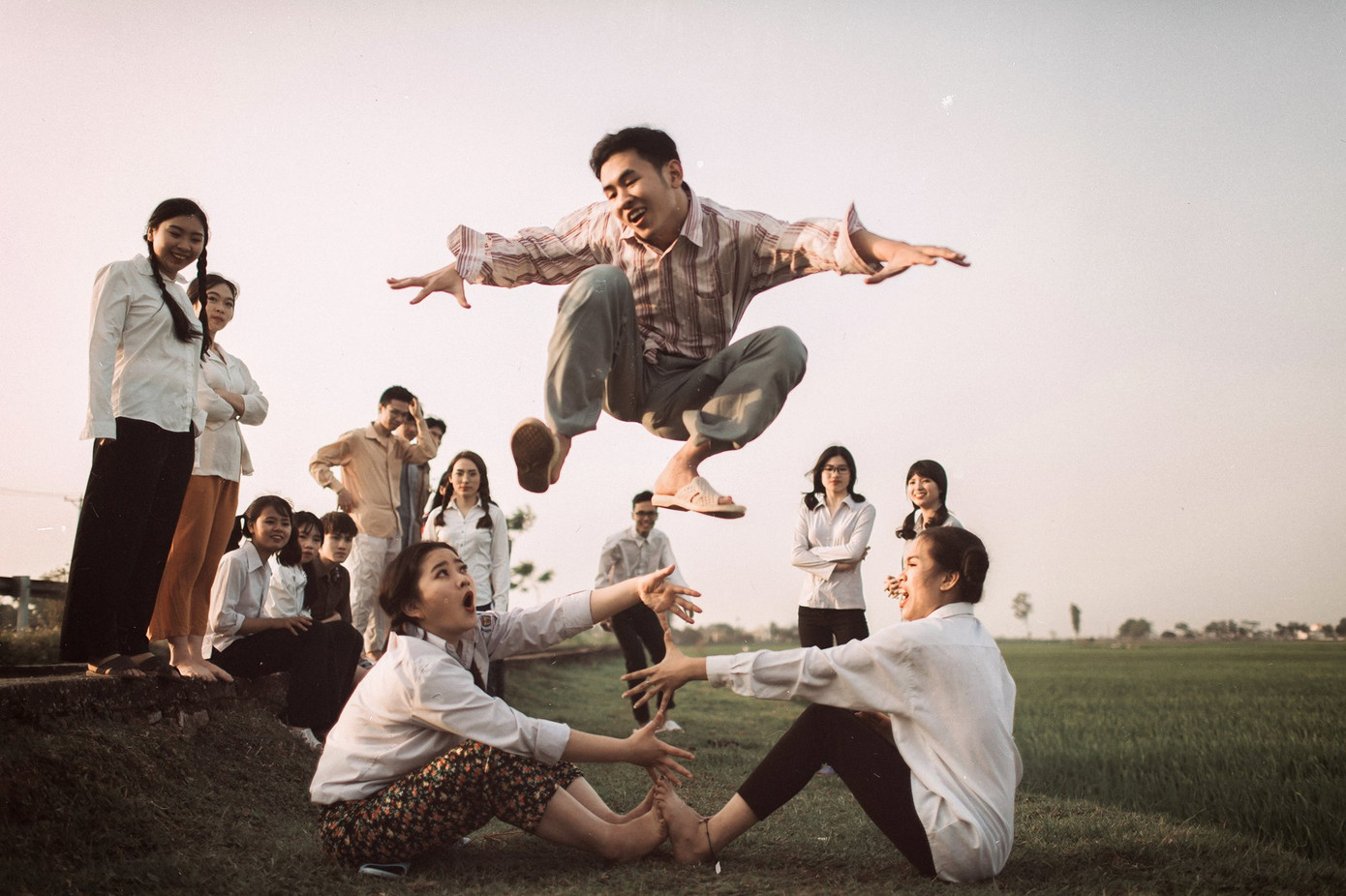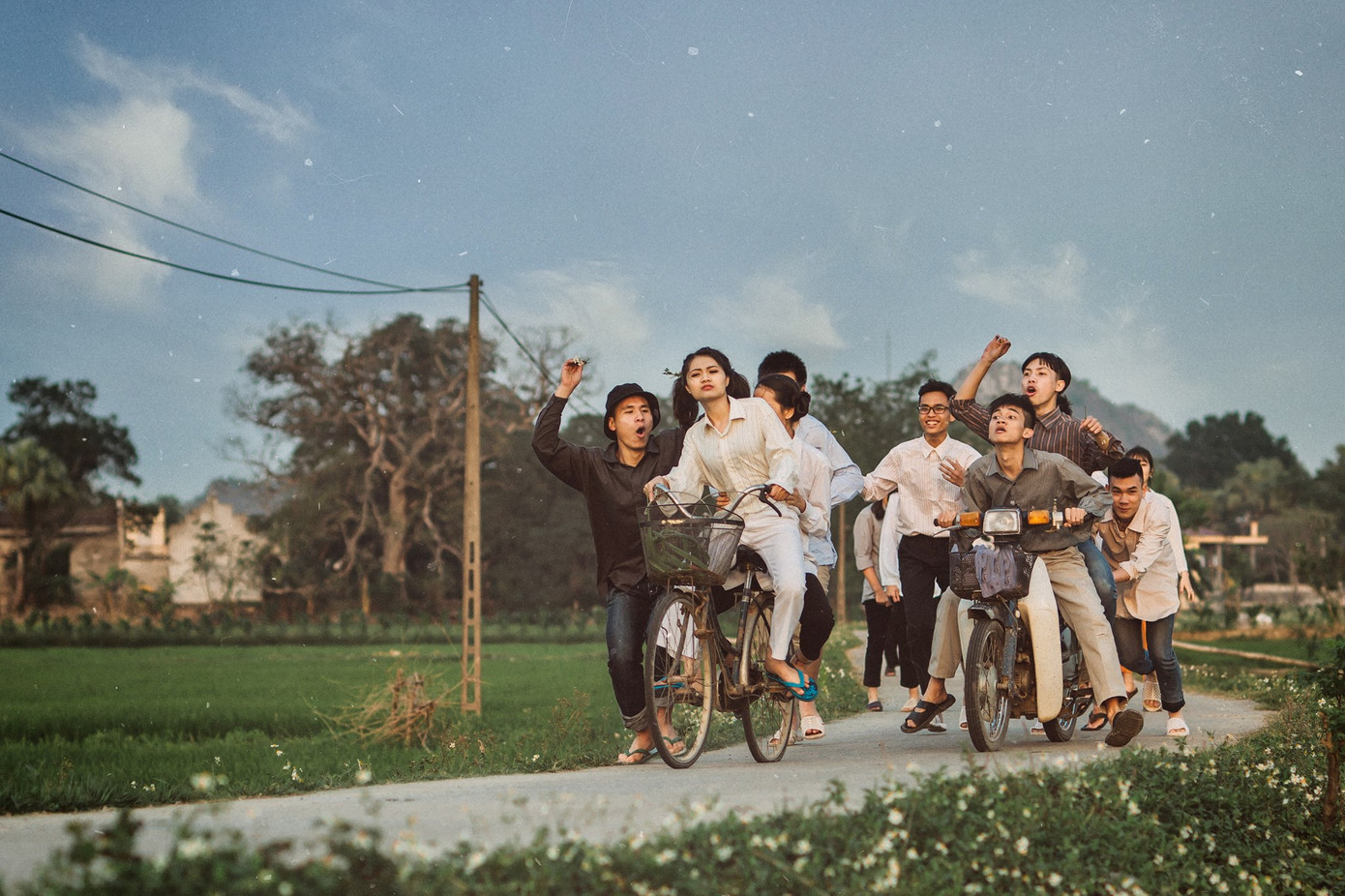 Bối cảnh được lựa chọn là cánh đồng “thẳng cánh cò bay”, mơn mởn màu xanh của lúa đang thì con gái. Đây cũng là những khoảnh khắc thư giãn trước khi các bạn bước vào những kỳ thi áp lực, căng thẳng sắp tới. Và có lẽ đây cũng sẽ trở thành kỷ niệm đẹp nhất để mai này dù có trở thành “ông nọ bà kia” thì tình bạn vẫn là điều ngọt ngào đáng trân trọng.