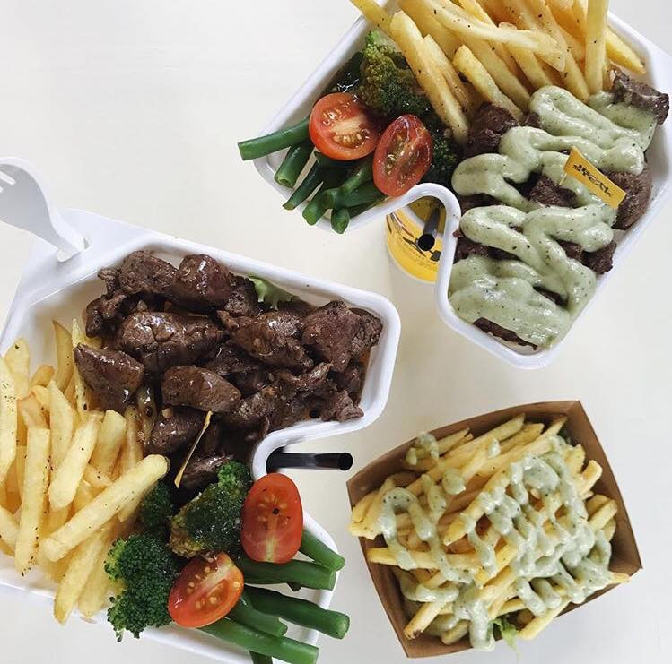 Bò không dai nhưng thơm nức mũi, một phần combo bò nước như thế này sẽ có đậu đũa, cà chua bi, khoai tây chiên, thịt bò, sốt chanh hoặc sốt tiêu, bông cải xanh.