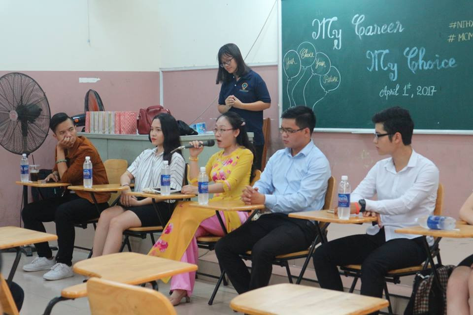 Thông qua bảng khảo sát được thực hiện trên một số bạn học sinh tại trường, các “nhóm ngành mà bạn quan tâm nhất” gồm: Kinh doanh, Dịch vụ mến khách, Công nghệ thông tin, Giáo dục, Y tế, Báo chí, Nghệ thuật và Luật. Để các bạn có thể hiểu rõ hơn cũng như lắng nghe câu chuyện chia sẻ thật về ngành nghề, 8 diễn giả được mời đến là 8 con người hiện đang học và làm việc trong lĩnh vực đó.