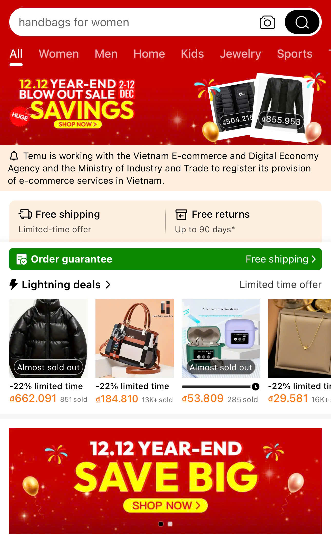 Trước đó theo ghi nhận vào ngày 4/12, toàn bộ nền tảng Temu từ website đến ứng dụng di động đồng loạt không còn hiển thị tiếng Việt mà chỉ còn hỗ trợ 3 loại ngôn ngữ là tiếng Trung, tiếng Anh và tiếng Pháp.