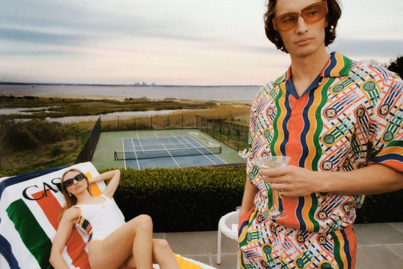 Điều này được khắc họa rõ nét trên áo polo màu xanh hải quân, bản in kẻ sọc kiểu thể thao cổ điển được mặc cùng quần bơi sang trọng, hay chân váy xếp ly tennis được cách điệu bằng hai lưng quần, điểm nhấn với phần dây rút buông thõng tự nhiên và cả chất liệu thể thao thoáng mát.