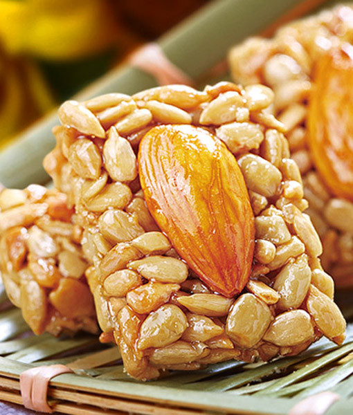 Để đổi vị trong tết này, bạn cũng có thể thưởng thức kẹo hạt hướng dương. Món ăn này đảm bảo là ai cũng thích mê mà lại khác biệt hoàn toàn nhé. Hạt hướng dương được tách vỏ, nấu cùng mật ong tạo thành một khối kết dính. Cắn một miếng kẹo là có thể ăn được rất nhiều hạt hướng dương một lúc đó, không lo bị rơi như hạt hướng dương thông thường nhé.