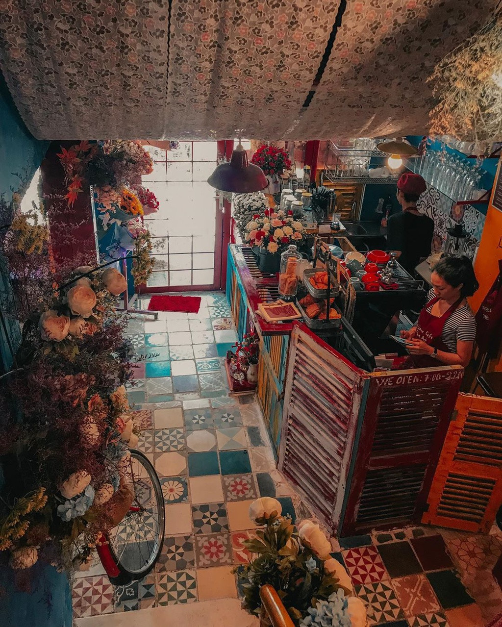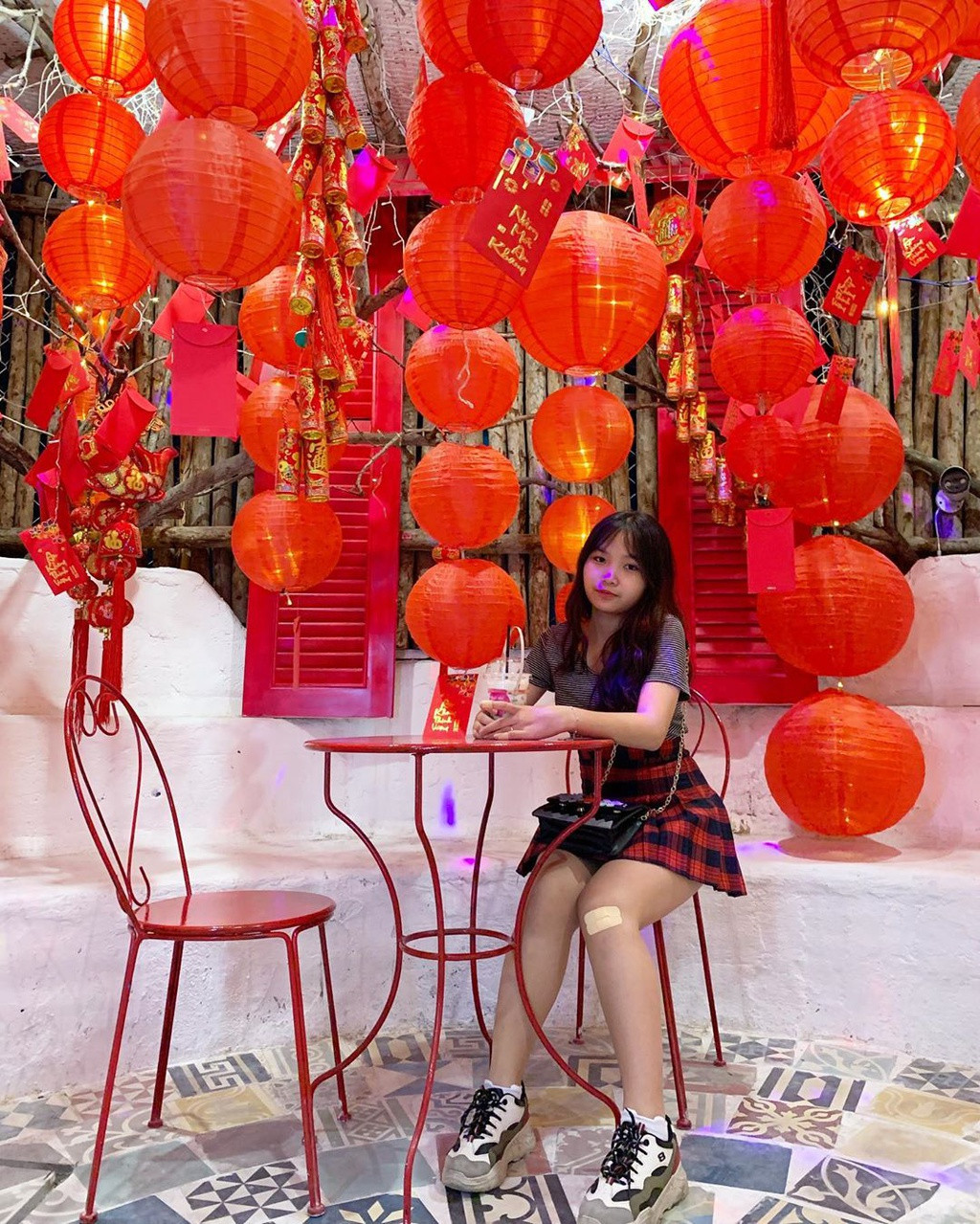 Ngay từ ngoài cửa, du khách sẽ thấy không gian Tết ngập tràn bởi những chiếc đèn lồng đa sắc màu ở tầng 1 và đèn màu lồng màu đỏ ở tầng 3. Tuy nhiên, nếu bạn đến đây chụp dịch vụ hay studio, hãy chú ý là nơi này thu thêm phí mang máy ảnh. Địa chỉ: 15 Nguyễn Cừ, phường Thảo Điền, quận 2, TP.HCM.