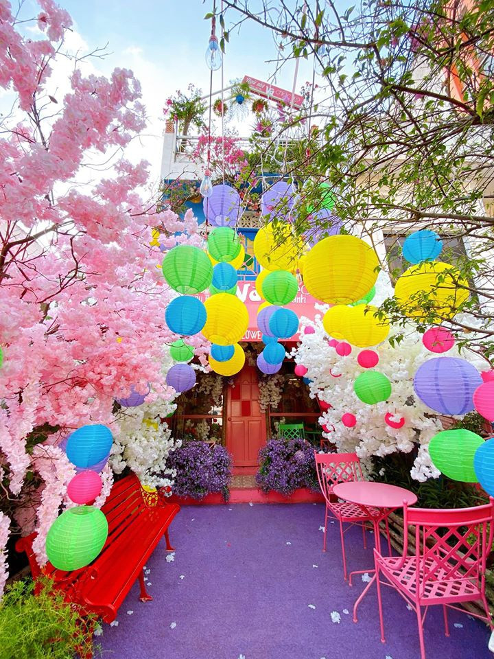 Quán cà phê ngôi nhà màu hồng và chiếc xe màu xanh: Quán cà phê được xem là trang trí Tết sớm nhất TP.HCM. Nơi đây còn được mệnh danh là “thiên đường sống ảo” với nhiều góc sống ảo ngập tràn hoa cùng 4 tầng với phong cách trang trí khác nhau.