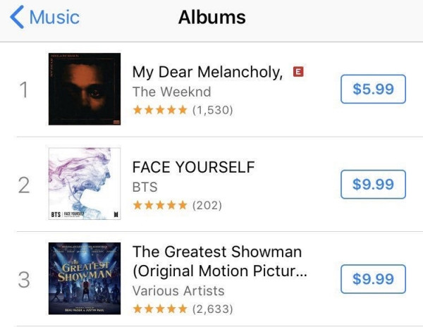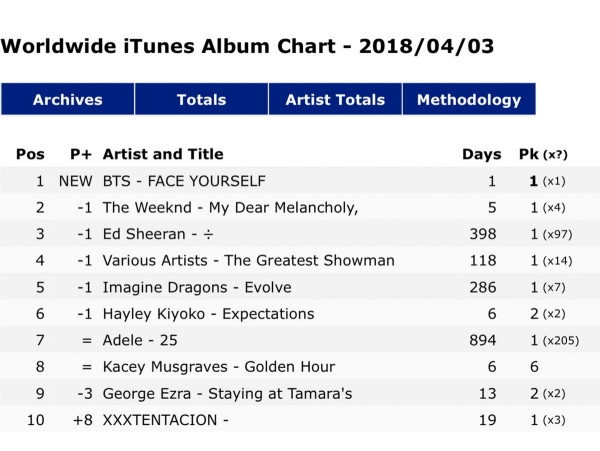 FACE YOURSELF “cướp” luôn vị trí đầu bảng của BXH danh giá Worldwide iTunes Album Chart.