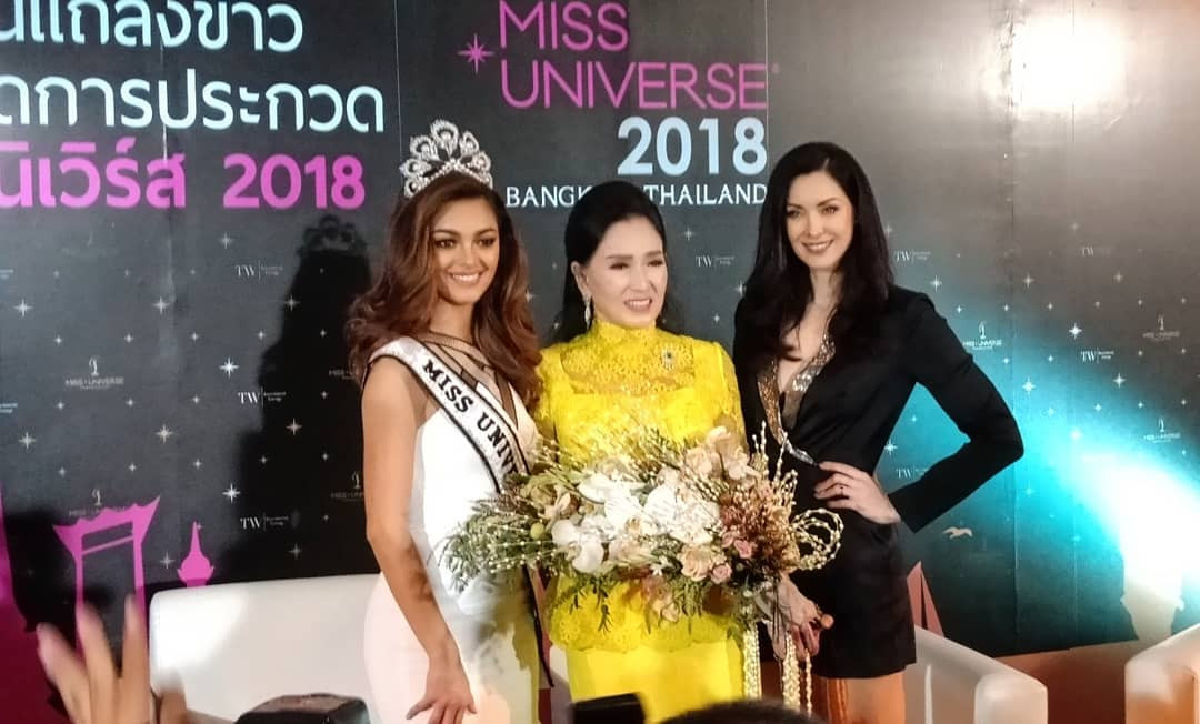 Trong sự kiện công bố Hoa hậu Hoàn Vũ 2018 trước đó tại Bangkok có sự xuất hiện của nhiều người nổi tiếng như: Hoa hậu Apasra Hongsakula, người phụ nữ Thái Lan đầu tiên giành chiến thắng Hoa hậu Hoàn vũ năm 1965, Hoa hậu Hoàn vũ 2017 Demi-Leigh Nel-Peters và Hoa hậu Hoàn vũ 2005 Natalie Glebova, Hoa hậu người Canada đã trở thành một nữ doanh nhân ở Thái Lan kể từ khi cô lên ngôi.