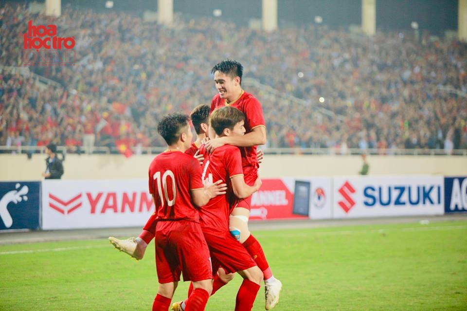 Sau bàn thắng của Đức Chinh, đội tuyển Việt Nam vẫn giữ cân bằng trận đấu với những đường chuyền khéo léo từ các cầu thủ nhiều kinh nghiệm. Cả sân vận động lại nóng hơn bao giờ hết khi Quang Hải "hạ gục" 4 cầu thủ của đội bạn để chuyền bóng cho Hoàng Đức ghi bàn. Một đường bóng đẹp đến mức HLV của đội bạn cũng phải giơ ngón cái khen ngợi.
