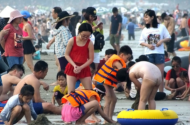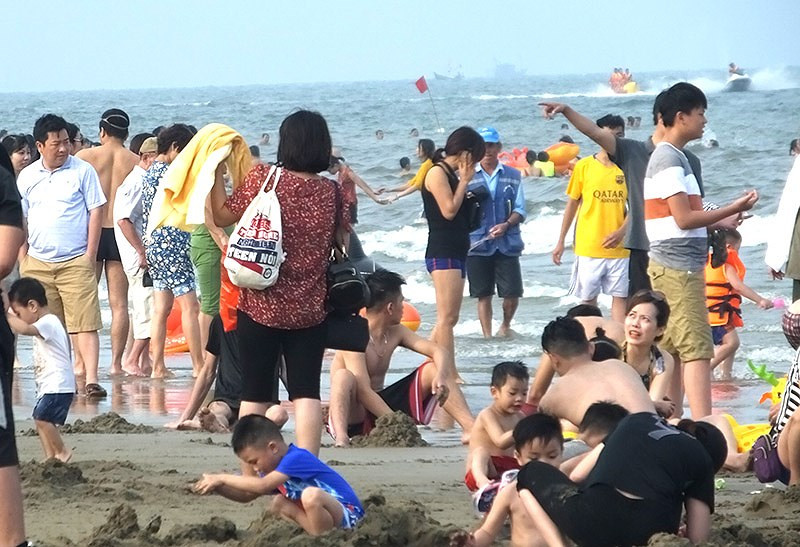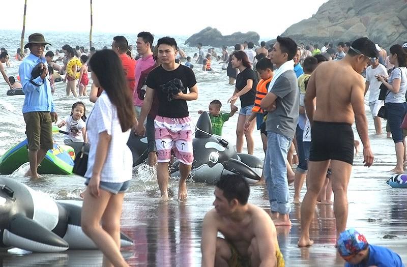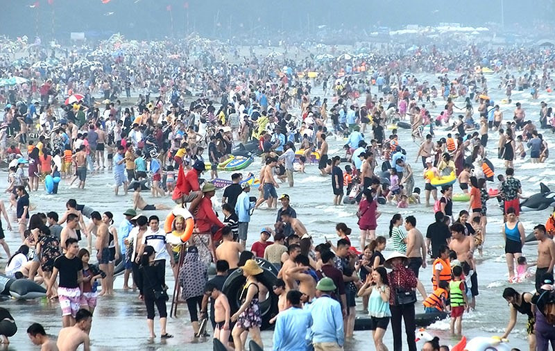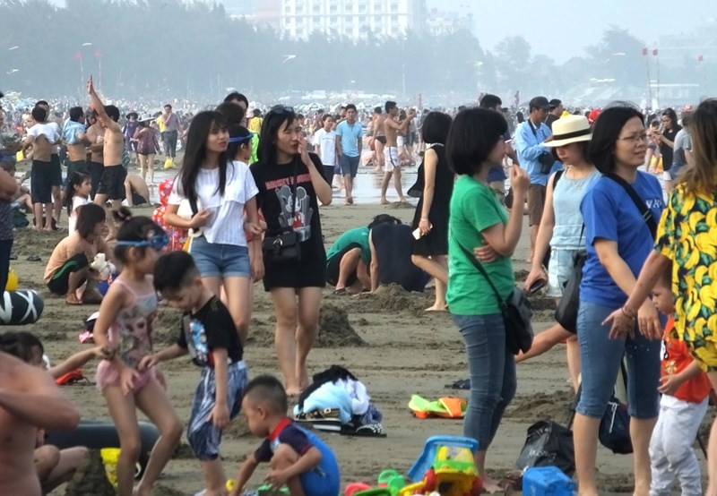 Người dân chen chân đổ về Sầm Sơn trong ngày đầu kỳ nghỉ lễ.