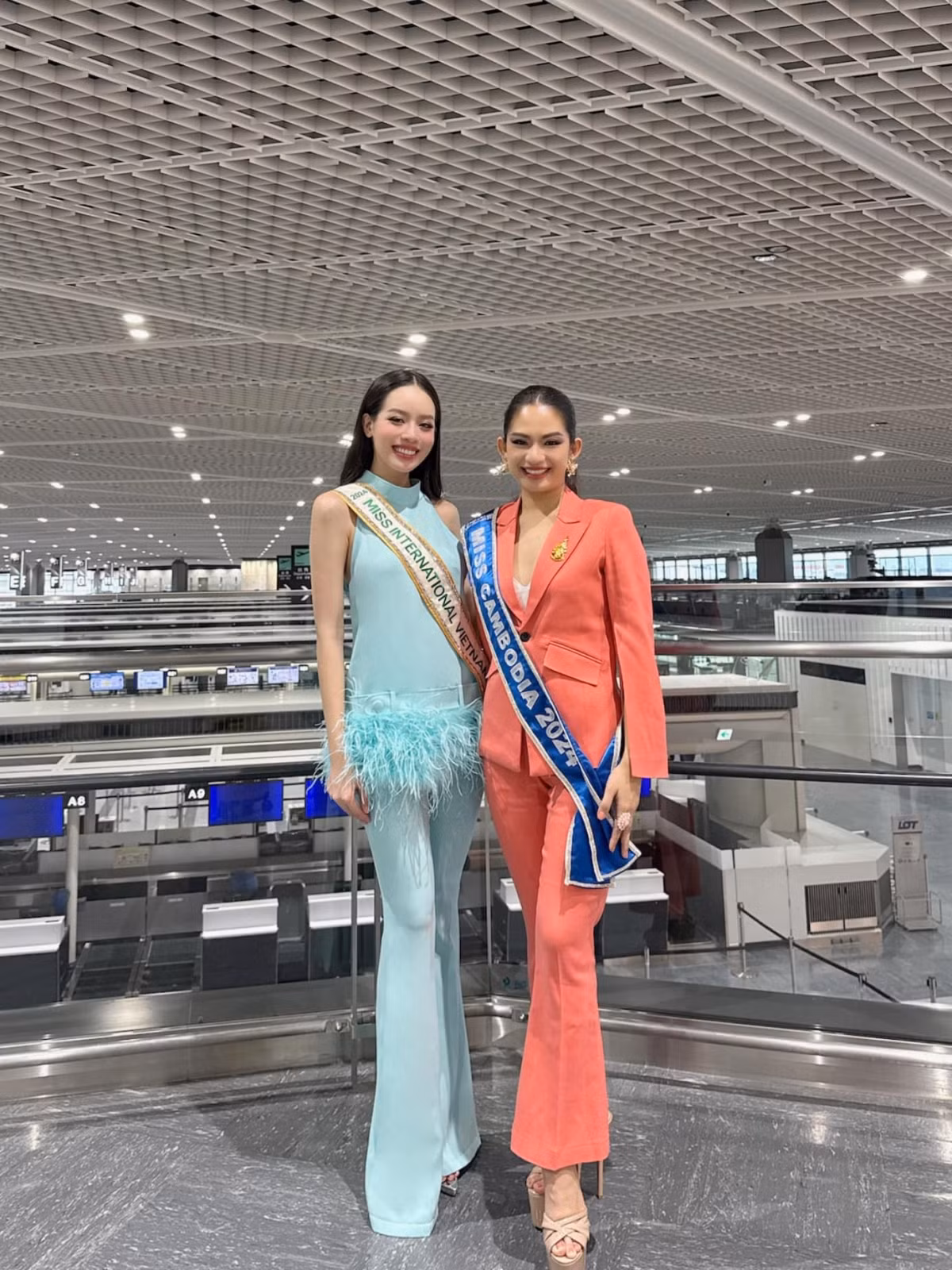 Hoa hậu Thanh Thủy đã tới Nhật Bản sáng ngày 29/10, nàng hậu hội ngộ đại diện Campuchia tại sân bay. Set đồ được Thanh Thủy mặc khi hạ cánh tại sân bay Nhật Bản được khen nổi bật, tôn dáng, trẻ trung, hợp với nhan sắc ngọt ngào của nàng hậu.