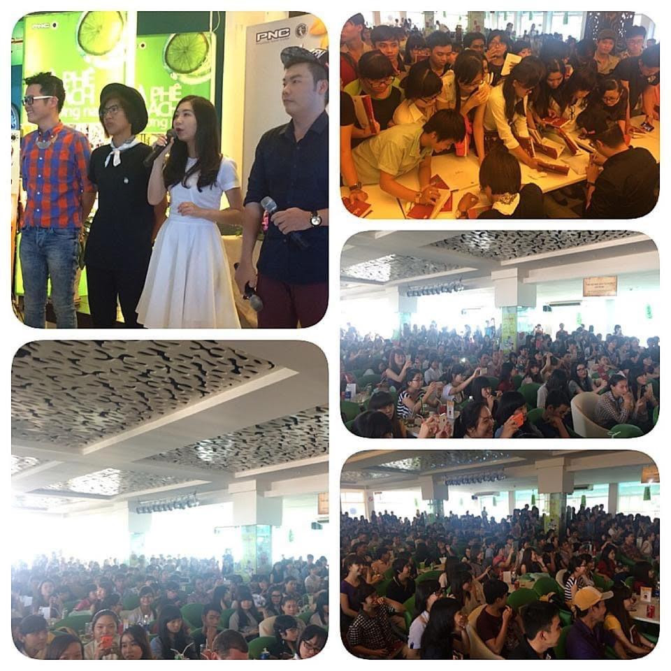 | Buổi ra mắt sách của chị Thu Hà (váy đen đứng giữa) do chị Châu thực hiện. |