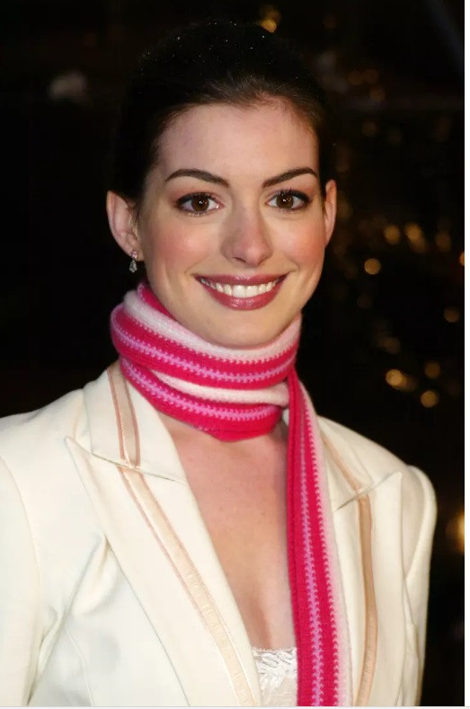 Khăn len kiểu này không phải để giữ ấm đâu, Anne Hathaway quấn cổ cho xinh thôi.