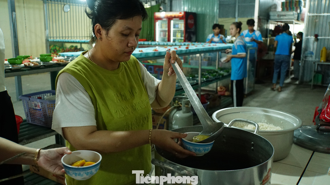 | Bữa ăn của các em có đầy đủ các món mặn, món xào, món canh và món tráng miệng, đảm bảo đầy đủ dinh dưỡng cho các em có sức khỏe học tập. Ngoài ra, còn có món chay theo yêu cầu của từng em. Ảnh: Hòa Hội |
