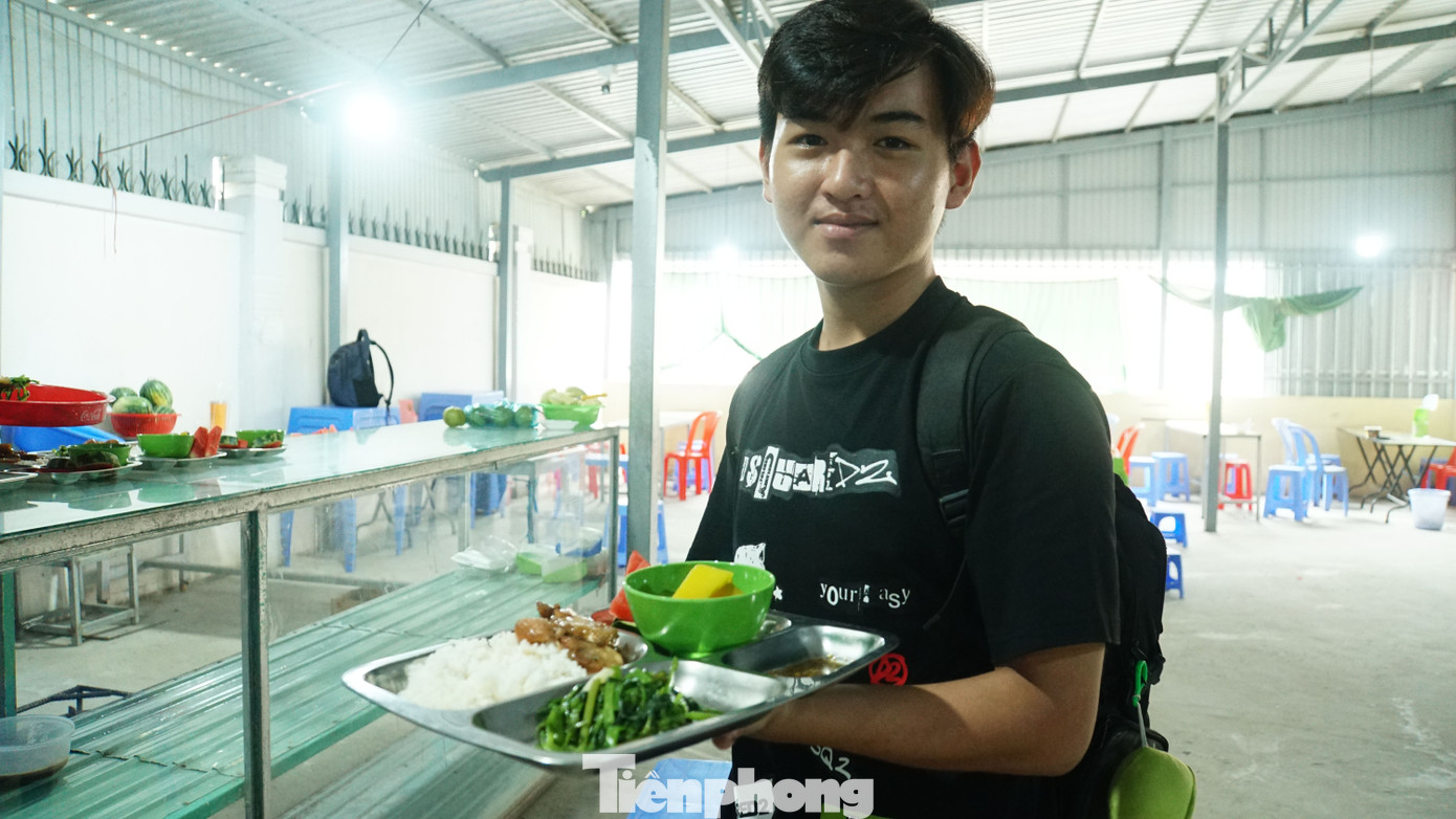 | Em Phan Nhuận Đông, học sinh lớp 12A1 trường THCS – THPT Trần Ngọc Hoằng cầm trên tay khay cơm nóng hổi, háo hức nói: “Nhà em cách trường 6 km, nếu không có hỗ trợ cơm trưa thì em phải về nhà ăn cơm sau đó quay trở lại trường ôn tập tiếp vào buổi chiều. Nhà trường giúp tụi em ăn uống, có nhiều thời gian nghỉ ngơi hơn, tiếp thêm tinh thần để tụi em chuyên tâm học, nỗ lực đạt kết quả cao nhất”. Ảnh: Hòa Hội |