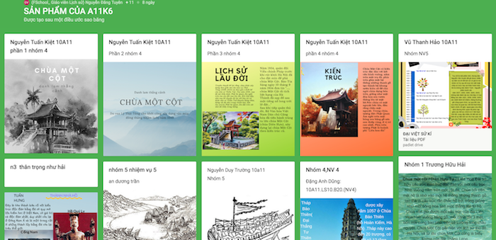 Trang web được lập trên nền tảng Google Sites, Padlet. Tại đây, thầy giáo sẽ đưa ra những nhiệm vụ thiết kế poster về một chủ đề lịch sử cụ thể. Cùng là về thành tựu văn hoá Việt Nam ở thế kỉ X-XV, có nhiệm vụ tìm hiểu về lĩnh vực tôn giáo, tư tưởng; có nhiệm vụ lại nghiên cưú về lĩnh vực kiến trúc Phật giáo; Nho giáo; Đạo giáo… Thầy cũng gợi ý học sinh có thể sử dụng công cụ Canva để thiết kế poster, đưa ra những lời khuyên để có 1 poster đẹp mắt.