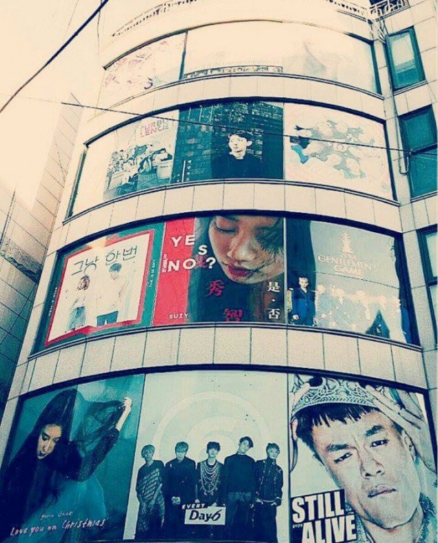 Tòa nhà JYP trước đây, với poster của Miss A...