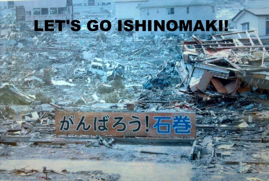 Sau cơn sóng thần, tất cả còn lại chỉ là một trận đổ nát và hoang vắng như chưa từng có dấu chân người đặt đến. Thế nhưng, khi bước chân đến đây, ắt hẳn bạn sẽ rất ấn tượng với một chiếc bảng hiệu rất to có ghi dòng chữ “Ganbarou Ishinomaki” cố nghĩa là “Cố lên nào, Ishinomaki”.