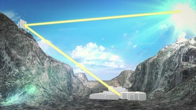 Trong khoảng thời gian này, cư dân ở đây phải sử dụng những tấm gương khổng lồ được đặt trên đỉnh núi, cách mặt đất 450 mét, với mục đích làm vật phản xạ nguồn sáng.