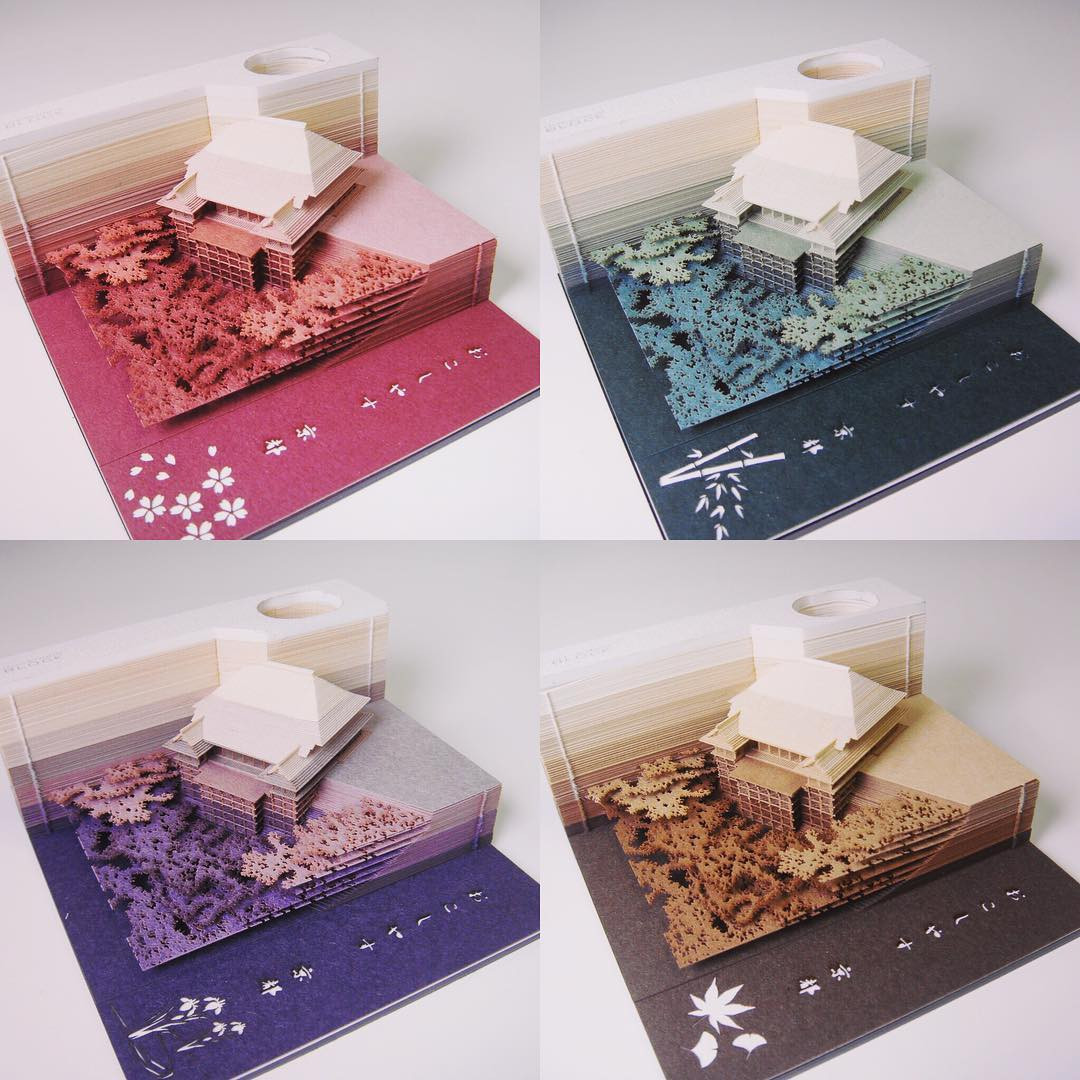 Thay vì chỉ xé và dán như giấy nhớ thông thường, giấy nhớ Omoshiroi đến từ một công ty Nhật Bản sẽ dần tạo nên những hình dạng rất xinh ngay khi chúng mình vừa xé tờ giấy nhớ đầu tiên. Từ các công trình kiến trúc nổi tiếng của Nhật Bản như tháp Tokyo, đền Kiyomizudera ở Kyoto đến vật dụng như máy ảnh, đàn piano, tất cả đều được dựng bằng những mảnh nho nhỏ còn thừa lại từ tờ giấy nhớ mà bạn đã sử dụng đấy!