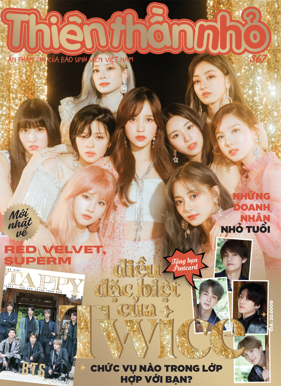 Thiên Thần Nhỏ 367 chính thức phát hành ngày 25/9/2019 tại các sạp báo, bưu điện, nhà sách FAHASA trên toàn quốc và Shopee với giá bán chỉ 20.000 đồng. Bạn sẽ nhận được poster TWICE khổ lớn, postcard BTS nằm gọn trong số báo mới.