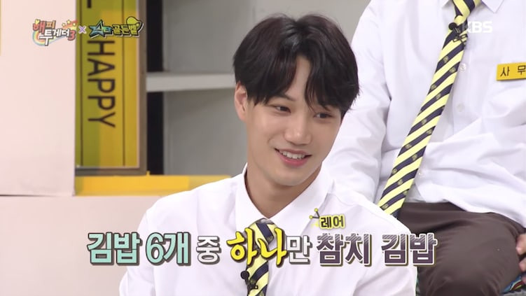Kai tiếp tục: "Sau khi ăn kimbap, bạn sẽ khát và muốn uống nước ngọt có ga. Nhưng họ chỉ mua một hoặc hai lon". Khi những người khác bình luận rằng công ty nên cho nhóm thức ăn và thức uống phong phú, Kai nói thêm: "Đó là trong thời gian debut của chúng tôi nên chúng tôi không có nhiều tiền. Chúng tôi đã làm điều này để mọi người cùng vui vẻ và tiết kiệm tiền nữa. Sau đó, các vị khách khác nói thêm: "Bây giờ bạn có thể mua được một nhà hàng cá ngừ rồi", khiến mọi người bật cười.