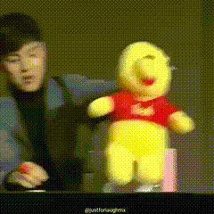 Shonwu (Monsta X) bắt gấu Pooh ngồi yên cho bằng được.