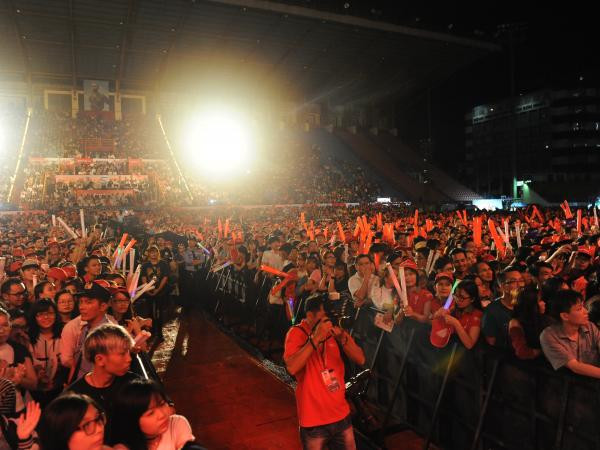 Dù chương trình diễn ra vào 8 giờ tối, thế nhưng từ sớm, SVĐ Quân khu 7 (TP.HCM) nhanh chóng được lấp đầy bởi rất nhiều khán giả. Sân khấu Sky Connection khá phù hợp với nhiều tầng lớp khán giả khi được thiết kế như một chuyến xe hành trình qua nhiều không gian âm nhạc khách nhau.