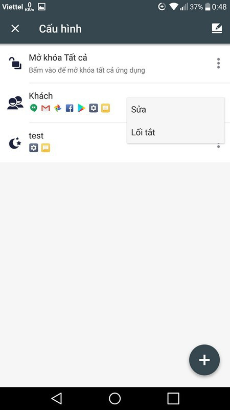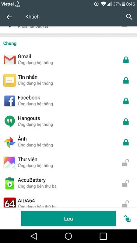 Tại đây bạn có thể đánh dấu để chọn khóa hoặc mở khóa các ứng dụng, chức năng hệ thống từ danh sách hiện ra.