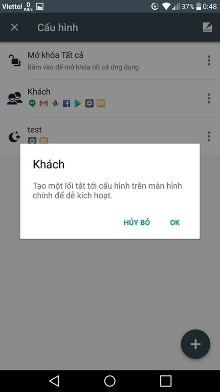 Bây giờ ở trên màn hình chính của smartphone sẽ xuất hiện một biểu tượng ứng dụng có tên là “Khách”. Mỗi khi cho ai đó mượn smartphone, bạn chỉ việc nhấn vào biểu tượng “Khách” này, lập tức AppLock sẽ tự động khóa lại các ứng dụng mà bạn đã chọn và để truy cập vào các ứng dụng đã khóa đòi hỏi người dùng phải điền mật khẩu đã khởi tạo.