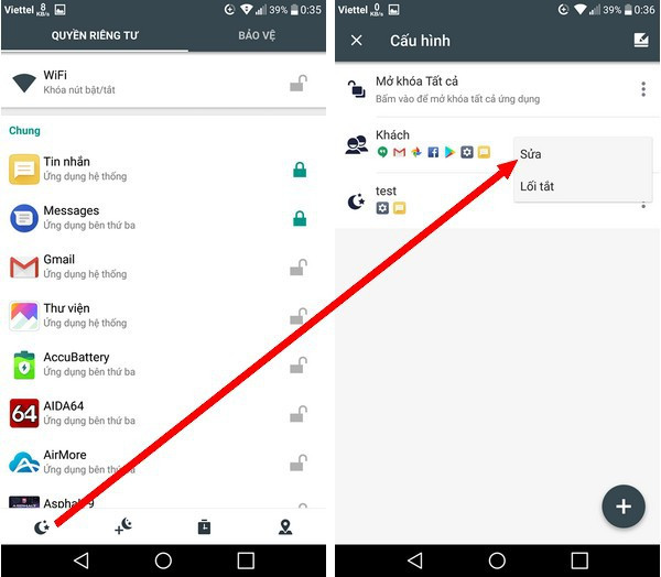 Để mở khóa các ứng dụng đã bị AppLock khóa lại, bạn truy cập vào ứng dụng AppLock, sau đó nhấn vào biểu tượng mặt trăng ở menu bên dưới như đã hướng dẫn ở trên. Tại giao diện “Cấu hình” hiện ra, bạn nhấn vào tùy chọn “Mở khóa tất cả”, lập tức AppLock sẽ đưa các ứng dụng về trạng thái ban đầu, nghĩa là có thể kích hoạt mà không cần mật khẩu.