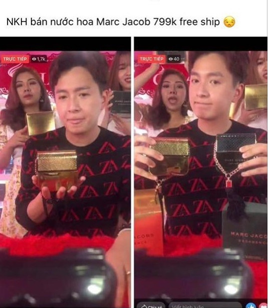 Ngô Kiến Huy gây tranh cãi khi xuất hiện trong một clip livestream bán hàng online cùng một số người đẹp lạ mặt. Được biết, sản phẩm mà nam ca sĩ rao bán là nước hoa nhãn hiệu Marc Jacobs giá 799K và được miễn phí ship.