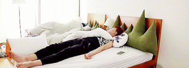 Nhưng nếu được nằm một mình một giường, thì Chanyeol sẽ nằm theo đường chéo, nhờ thế mà anh chàng có thể giang rộng chân tay thoải mái. Có thể thấy Chanyeol đang nằm trên một chiếc giường đôi tiêu chuẩn dành cho hai người, thế mà một mình anh chàng nằm lên đã thấy hơi chật rồi.