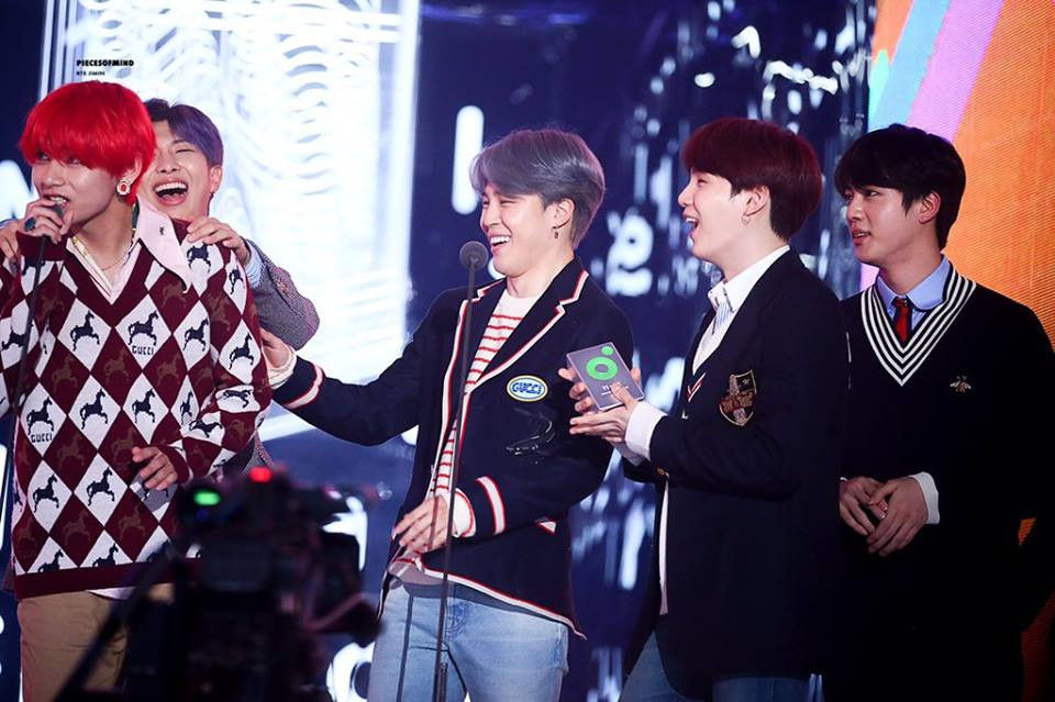 Chuyện là khi BTS đang nhận giải thưởng Kakao Hot Star và cử đại diện phát biểu cảm xúc, cám ơn khán giả thì V tranh mic để tâm sự vài điều. Có ngờ đâu đúng lúc này, ban tổ chức lại đã phát nhạc của tiết mục biểu diễn tiếp theo do A Pink thể hiện. V vô cùng bối rối khi thấy mình muốn nói mà không được, còn các chàng trai BTS thì cười lăn cười bò vì chàng V số nhọ.