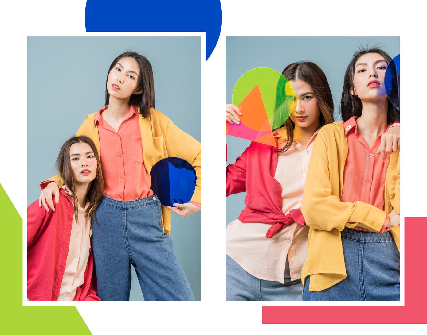 Trong những bộ cánh bằng chất liệu thun cotton và denim bụi bặm, hai chân dài nổi tiếng làng mốt hoá thân thành những nàng thơ thời trang, hoà mình trong cuộc chơi của màu sắc và những mảng hoạ tiết đan xen thú vị. Những chiếc áo sơmi với đường nét cắt cúp đơn giản được cả hai cô nàng phối thông minh cùng chân váy hoặc những chiếc quần cullotes với sắc màu chói lọi, nổi bật. Ngoài ra, cả hai cũng khẳng định tình bạn khăng khít của mình thông qua những bộ cánh xuyệt tông hoặc những trang phục đôi xinh xắn.