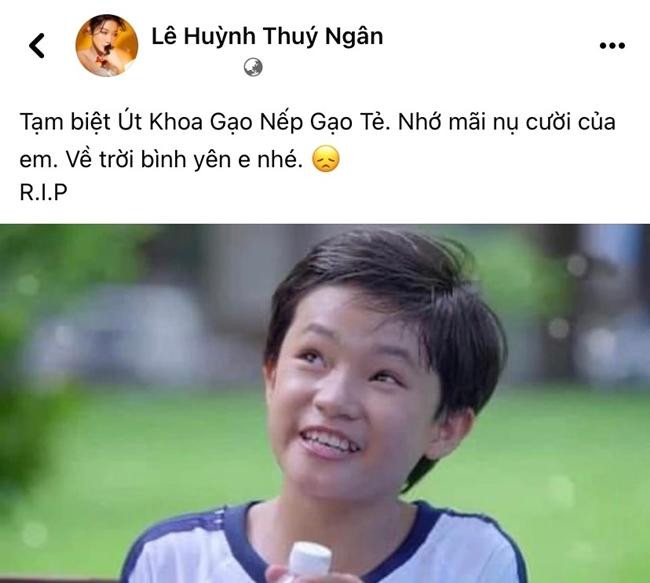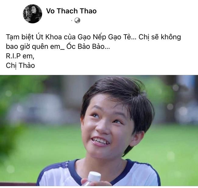 Diễn viên Thúy Ngân và đạo diễn Võ Thạch Thảo đã chia sẻ bài viết bày tỏ nỗi tiếc thương dành cho tài năng trẻ. Thúy Ngân viết: "Tạm biệt Út Khoa Gạo Nếp Gạo Tẻ. Nhớ mãi nụ cười của em. Về trời bình yên em nhé. R.I.P." Còn Võ Thạch Thảo chia sẻ: "Tạm biệt Út Khoa của Gạo Nếp Gạo Tẻ... Chị sẽ không bao giờ quên em - Ốc Bảo Bảo."