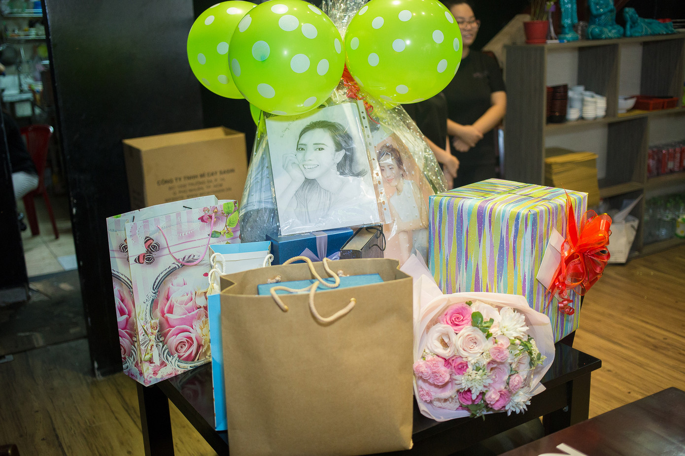 Đón tuổi mới với nhiều thành công trong sự nghiệp, “Hoa hậu hài” đã nhận được sự yêu mến của đông đảo khán giả. Nhiều fan từ khắp nơi đã đến chung vui cùng Thu Trang trong ngày đặc biệt này, mang theo những món quà đầy ý nghĩa. Có fan còn tự tay vẽ chân dung, làm gối in hình nữ diễn viên. Đặc biệt, người hâm mộ từ Bắc Ninh còn gửi tặng chị chiếc áo in hình cả gia đình.