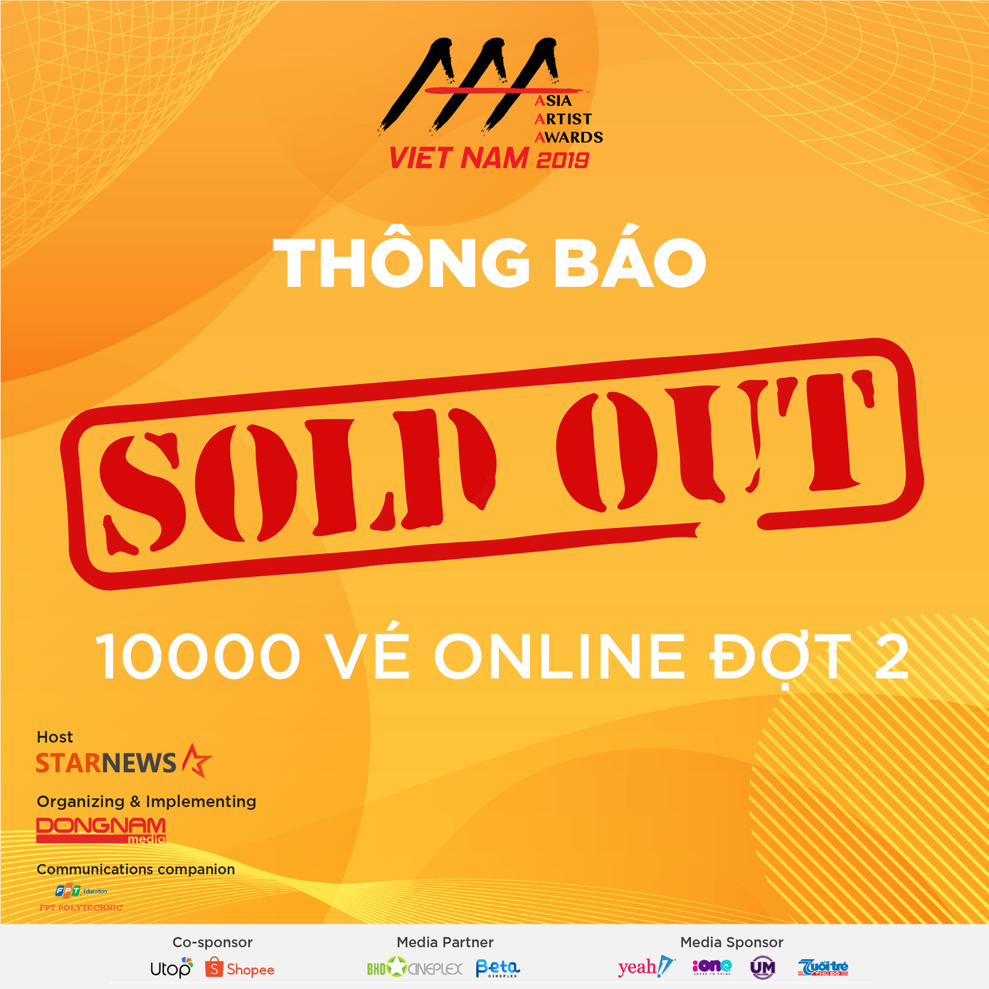 Lịch công bố mở bán đợt 2 vé AAA 2019 đã được thông báo từ 8h00 ngày 16/10 đến 20h ngày 22/10. Tuy nhiên BTC đã thông báo vé được bán hết từ 17h00 ngày 21/10, sớm hơn 1 ngày so với dự kiến.