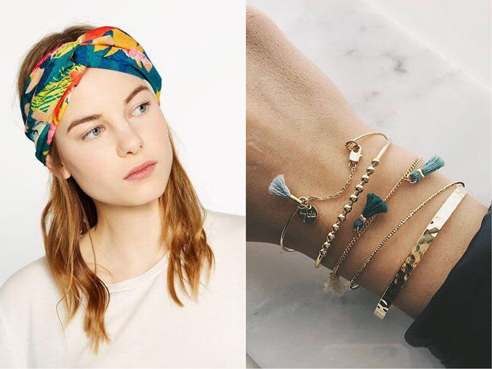 Trong trường hợp quần tây, áo sơ-mi là người bạn đồng hành, khăn turban và một set vòng tay đơn giản sẽ giúp bạn tạo điểm nhấn màu sắc. Bạn biết không, với turban, chúng mình có thể “hô biến” thành băng đô, chiếc nơ buộc tóc hay thắt khăn trên cổ áo sơ-mi đó! Ngoài ra, một set vòng từ 2-3 cái là một con số hoàn hảo để chúng mình không vướng víu trong “công cuộc” chép bài.